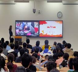 2019级130名学生在教2-103开展了”讲党史故事,做薪火传人”党课教育宣讲会。