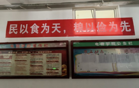 2022年10月16日,在第42个世界粮食日、全国粮食安全宣传周来临之际,为积极践行“保障粮食供给 端牢中国饭碗”的主题,培养学生爱粮节粮的意识,成人导航 在显眼公共区域张贴横幅宣传语,面向学生开展“民以食为天,粮以俭为先”爱粮节粮活动,教育学生学习“爱粮节粮”知识,形成以“光盘行动”为荣,以“铺张浪费”为耻意识,弘扬勤俭节约的传统美德。