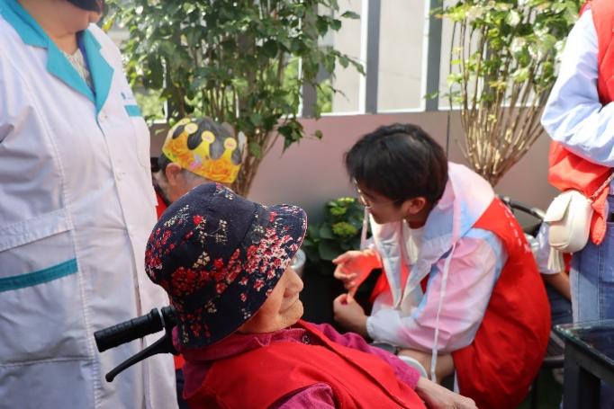 随着庆生活动的开始,欢声笑语充满了整个天台。同学们为每位过生日的长者献上了深情的祝福。他们用轻柔的声音和真挚的表情,表达了对长者们的敬爱之情。长者们的脸上洋溢着幸福的笑容,感受到了来自年轻人的关怀和爱意。在为养老院的长者们庆祝生日的同时,同学们也主动和爷爷奶奶们唠家常、讲故事,同学们细心地陪伴着老人们,倾听他们的心声,分享他们的欢笑和忧愁,现场充满了温馨的氛围。