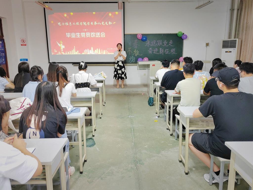 学生第八党支部于6月28日晚在工5-406教室举办“牢记初心使命,绽放红色青春”为主题的毕业生党员欢送会。本次活动由党支部书记李彬主持,支部全体党员参加。