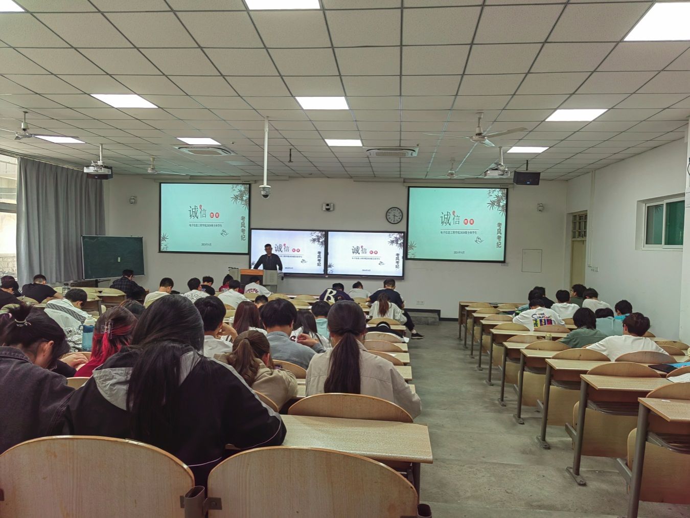 在教1-109召开2020级考风考纪诚信教育大会,会议由2020级辅导员郜辉主持,覆盖2020级全体毕业重修考试学生。
