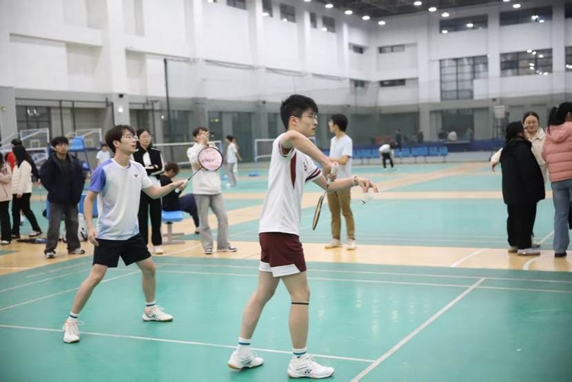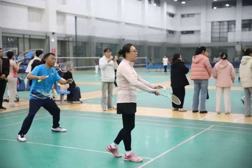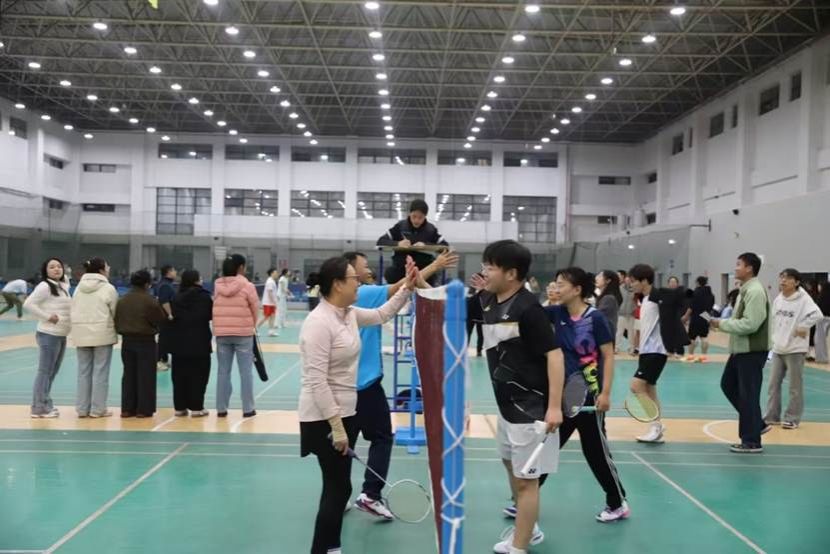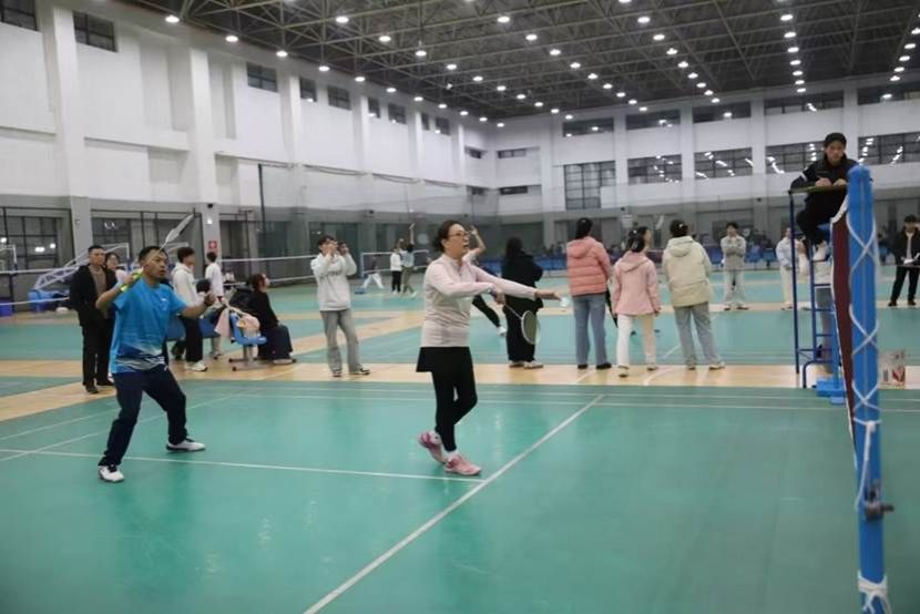 师生全情投入,展现出卓越的运动素养与精湛的竞技水平。教师们一改平日严谨教风,在赛场上身手矫健、配合默契;同学们则活力四射,步伐灵活、反应迅捷,每一记扣杀与吊球都引来阵阵掌声。