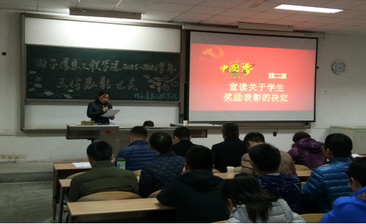 2015-2016学年度“三好表彰”大会在教1-303隆重举行。成人导航