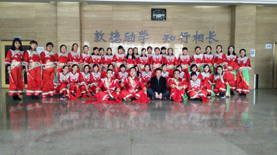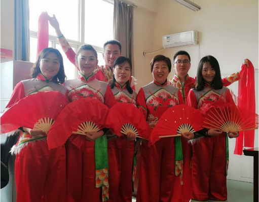 秧歌队用热闹欢快的秧歌舞,给全校女教职工送去“三八”妇女节的祝福与问候!