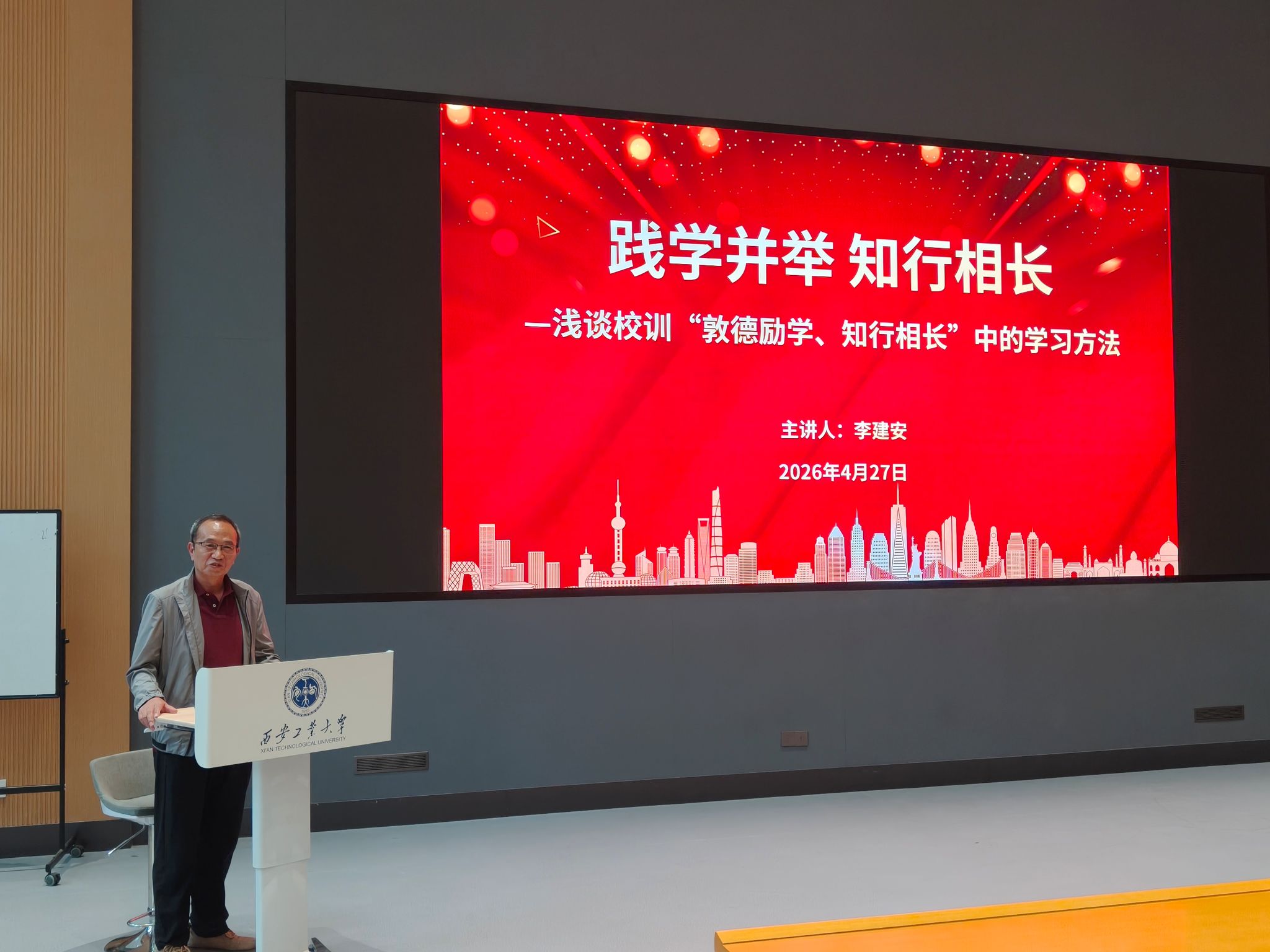 讲座中,李建安结合自身教育经验,解读“敦德”与“励学”的辩证关系,强调学习需兼顾品德锤炼与实践践行。他结合校训分享实用学习建议:以“敦德”为指引树立学习目标,养成预习、专注、复盘的良好习惯,注重理论与实践结合,保持持之以恒的学习态度。分享朴实生动,现场氛围浓厚,同学们表示,既加深了对校训的理解,也学到了实用方法,将学以致用。